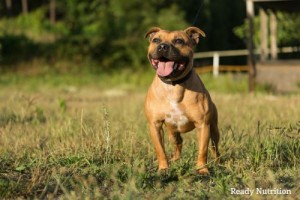 Beautiful staffordshire bull terrier posing in a park at the sunset Leave a Comment / By Tess Pennington / September 21, 2015